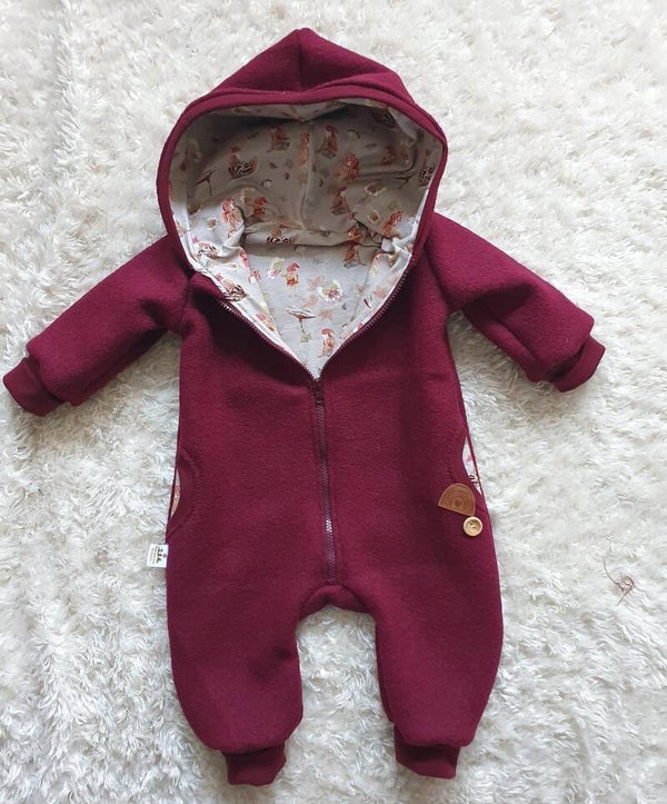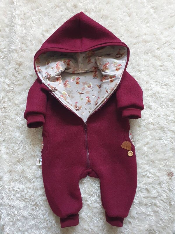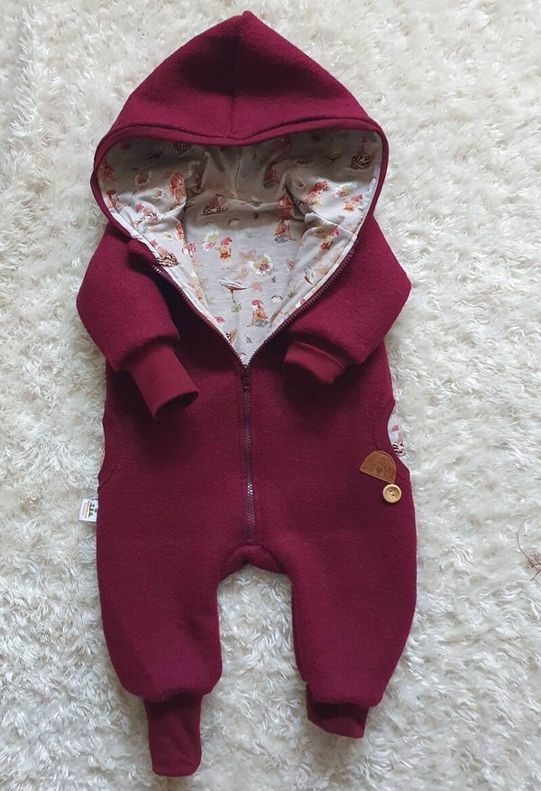 Schöner Wollwalkoverall, Innenfutter "Zwerge im Wald"