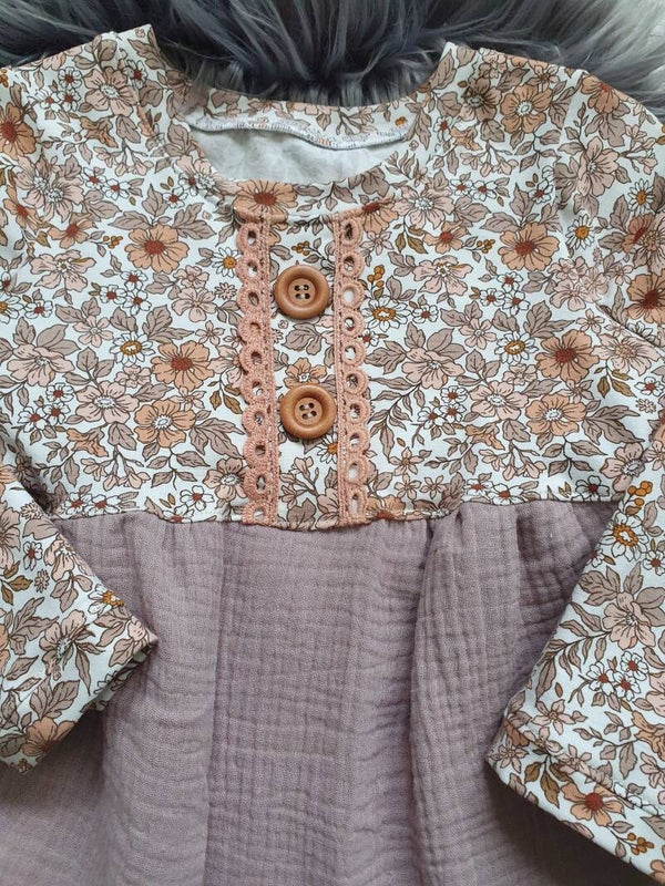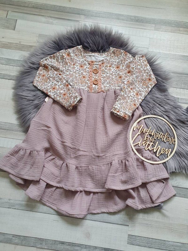 Romantisches Tunika Kleid in A-Linie geschnitten,Vokuhila mit Volant. Rockteil aus luftig fallendem Musselin