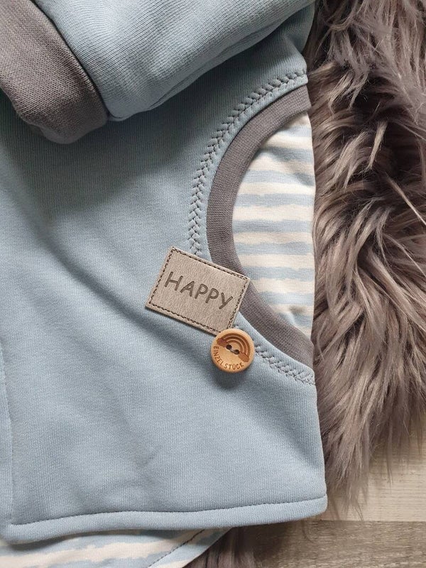 Innenfutter Streifen , 2 unterfütterte Faketaschen ,Kapuze,Reißverschluss und Mitwachsbündchen.