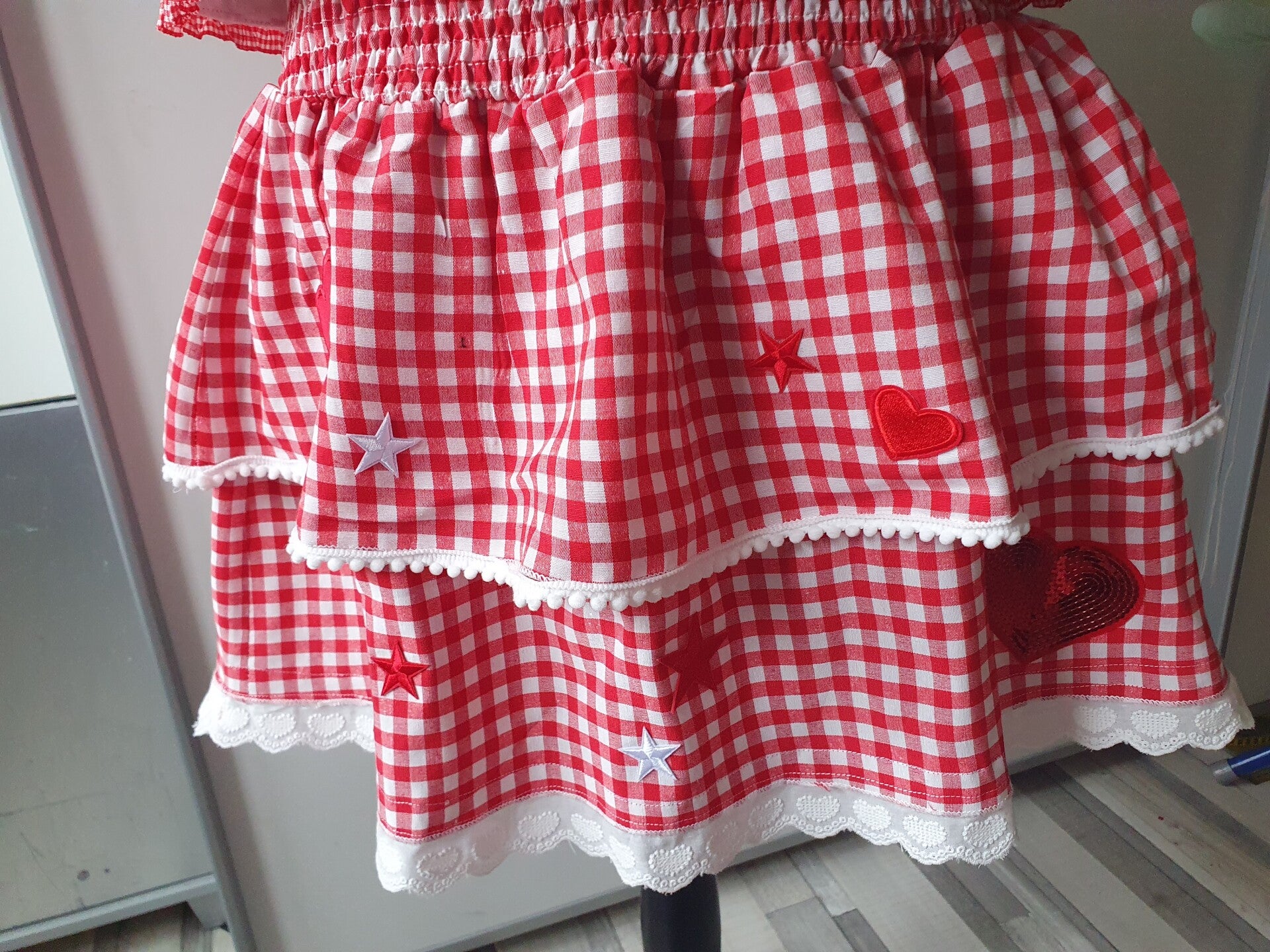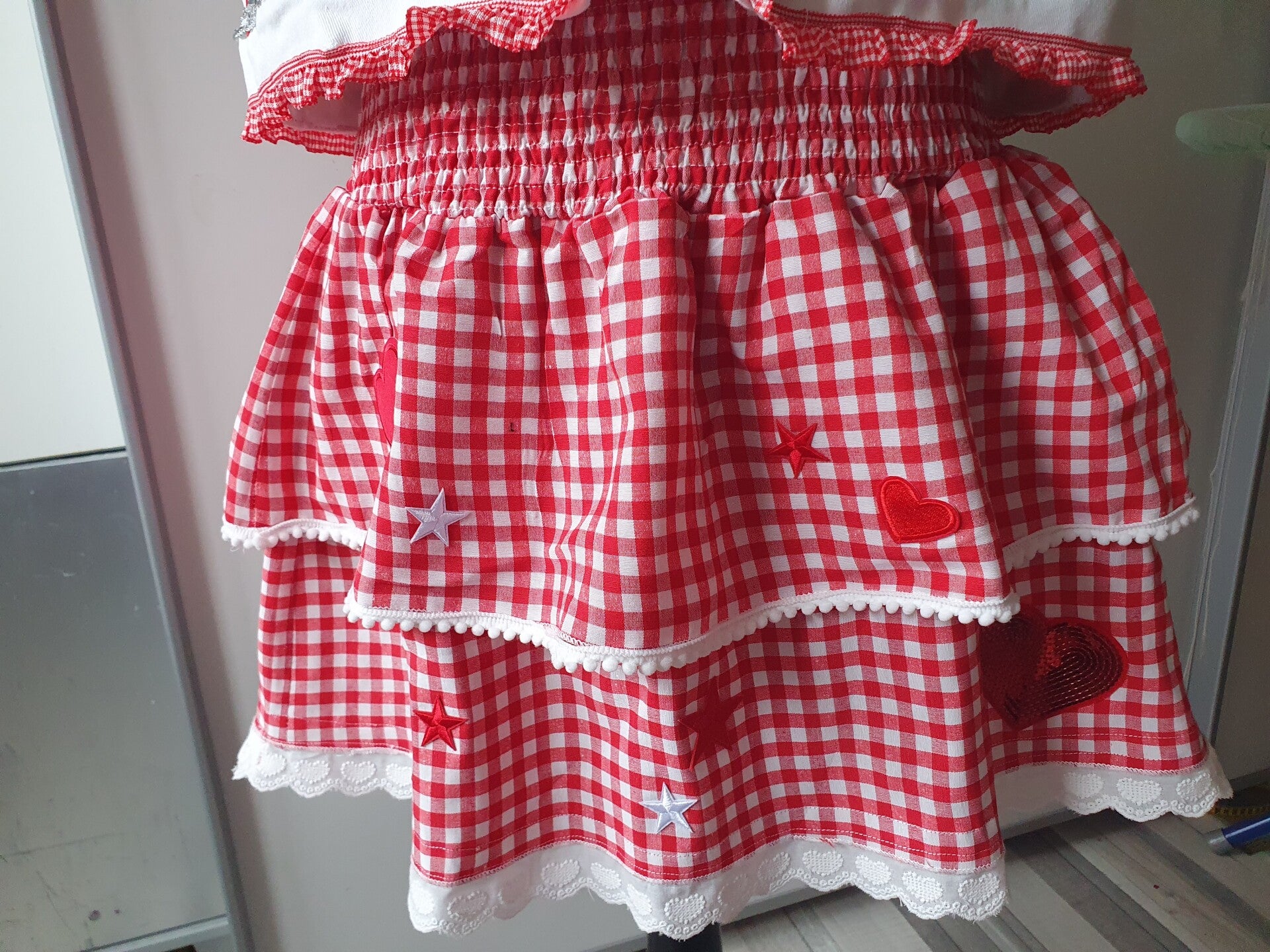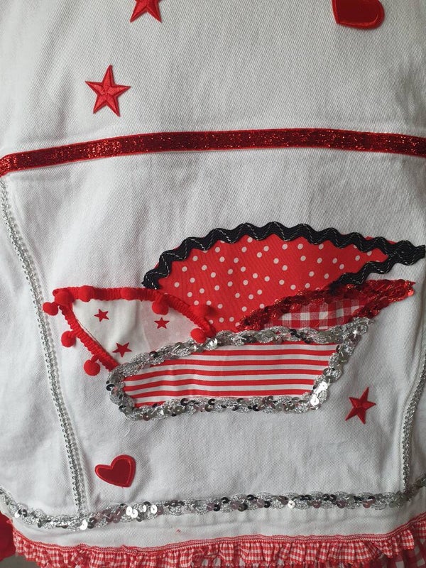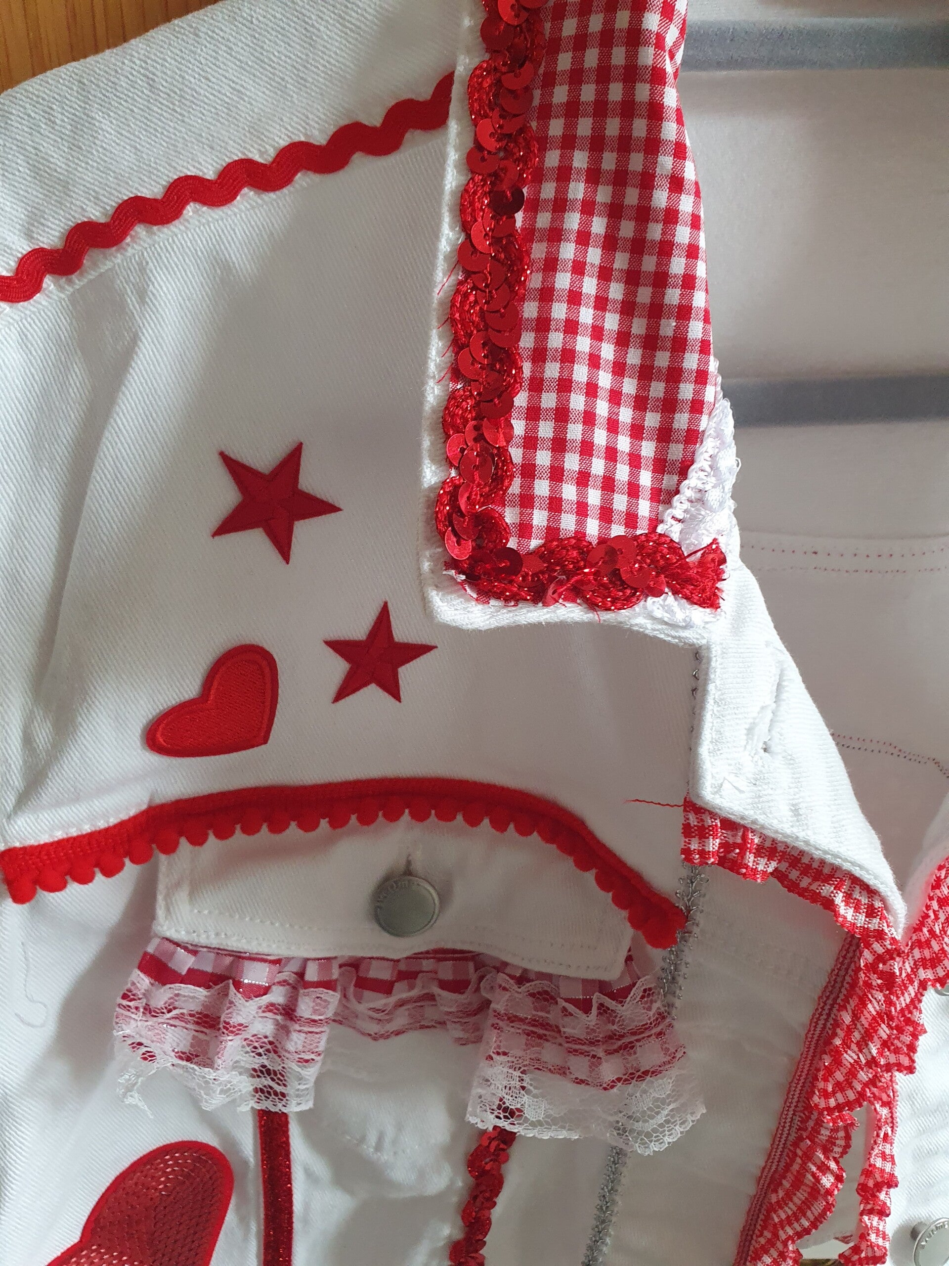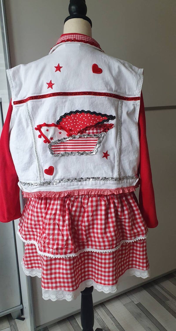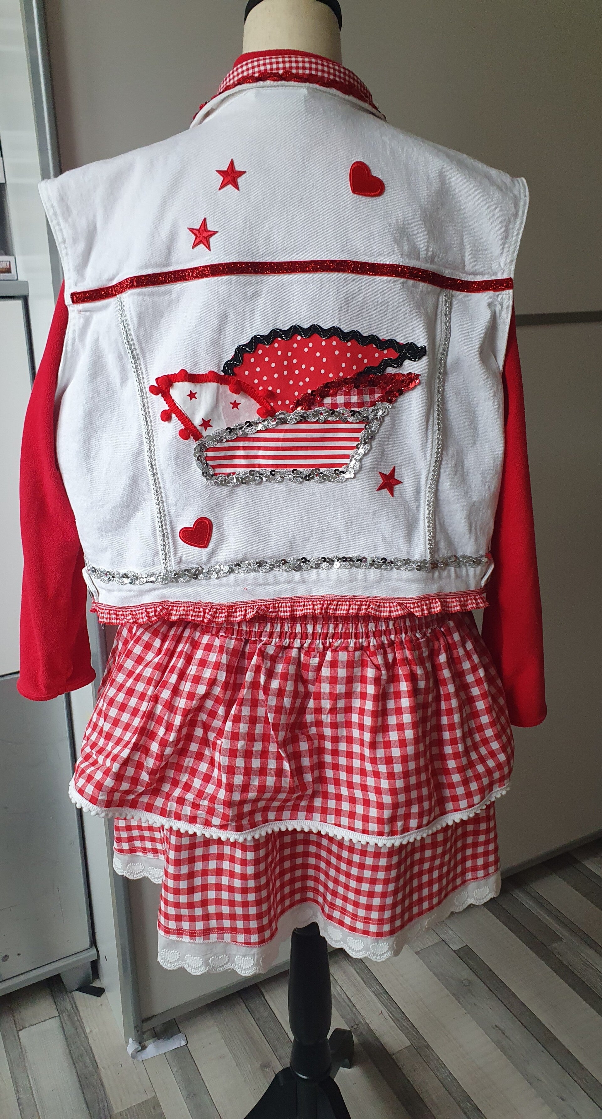 Bestehend aus gepimpter Jeansweste uns passendem Rock zum Thema Köln ,rot /weiß