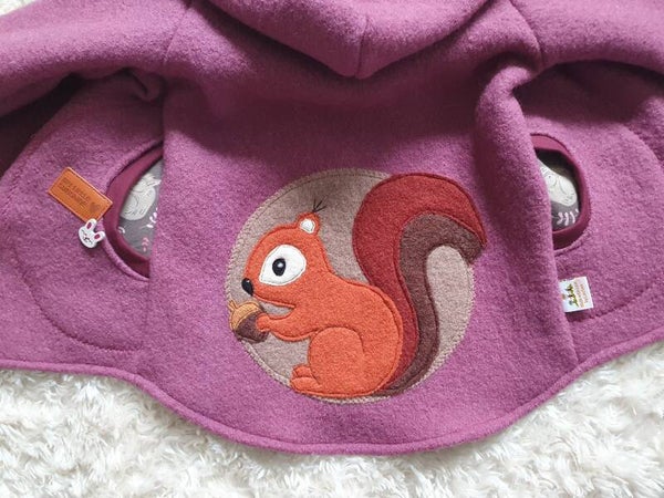 Schöne Wollwalkjacke mit handgefertigten Applikation Eichhörnchen,ebenfalls aus Walk